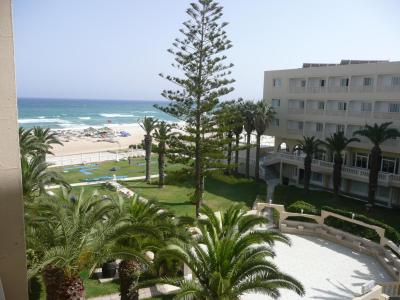 Byli jsme celkem čtyři (dva dospělí a dvě děti), bydleli jsme v krásném velkém pokoji, který se dal přepažit závěsem, takže dvě postele a dvoulůžko bylo oddělené. Z pokoje se dalo vyjít na malý balkónek s výhledem na moře. Je tedy pravda, že po příjezdu (asi v půlnoci) se k nám chovali sice velmi mile pití na uvítanou plus lahev vody na pokoj (měli jsem děsnou žízeň), ale dostali jsme klíče od třílůžkového pokoje. Což mě dost naštvalo a i když bylo pozdě, šla jsem to na recepci vyřešit (měli jsme zaplaceno za čtyři osoby!). Pán na recepci mě vyslechl, někam zavolal a dostali jsme tento pokoj. Měla jsem asi také štěstí, protože pan recepční uměl trochu anglicky a jak jsem později zjistila, spíš to byla výjimka, recepční hovořili většinou arabsky a francouzsky.Pokoj čistý, každý den uklízely, na můj vkus až moc často (minimálně dvakrát denně vám někdo chodil do pokoje).