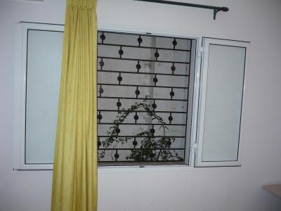 nebo terase či balkonu. Vypadalo to,jako by pokoj používali na náhradní díly. Bylo to v přízemi a za jediným oknem asi ve vzdálenosti 40 cm