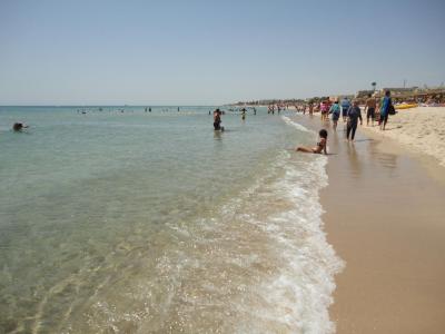 moře nádherné,proto jsme sem jely,po bouřce samozřejmě velké vlny a vyplavené chaluhy,ale kdo jezdí k moři,tak ho to nepřekvapí,sprchy a wc na pláži nepoužitelné,to je největší nedostatek na celé dovolené,málo lehátek,chodily jsme každý den brzy ráno dávat si osušky na lehátka a na lehátkách nejsou matrace,takže jsme si koupily nafukovací matraci