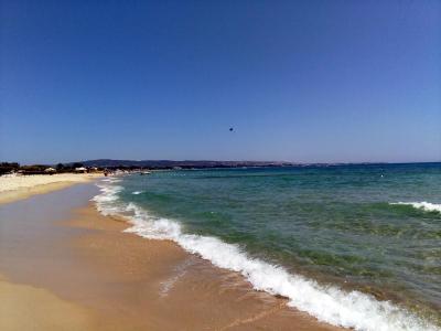Cesta k pláži je sice 500 m, ale je dobrá. Moře je tu čisté a pozvolné a nechybí ani vlny.