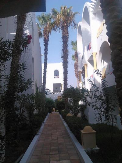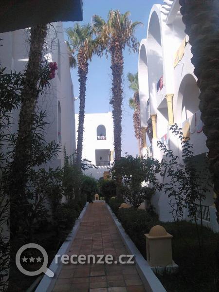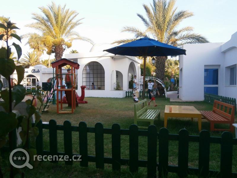 v okolí hotelu hezká zahrada, plno palem, datlovníky i několik banánovníků s trsem banánu, s malými dětmi jsme nikam moc ven nechodili, jen jsme jeli to Hammametu do přístavu, taxikáři jsme dali 5 Dinárů, ale byl to poctivec, měl zapnutý taxametr, kde byla cenu 3,8 D a chtěl nám vrátit peníze zpátky, cesta zpátky taky 5 Dinárů. Pokoj jsme měli v přízemí hned naproti dětskému hřišti, což bylo naprosto ideální pro naše kluky, kteří tam každý den hráli s klukama s Libye fotbal :oD