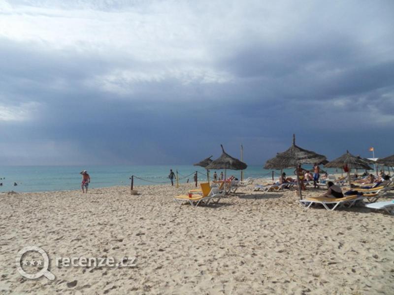 Pláž a moře čisté a teplé (poprvé jsme zažili v Tunisu vlny jako v Karibiku, ale dáno počasím), dostatek lehátek se slunečníky, nebyl problém si najít místo.