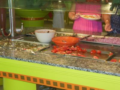 katastrofa ,boj o jídlo ,věčně prázdné mísy, chcete li jíst bojujte , v podstatě jen zelenina a to pořád do kola, maso jen kosti , ráno na snídani marmeláda, jogurt ,tvaroh , a salám o ten ale musíte bojovat ,a brát ho rukama jinak nejíte .pokud jedete s dětmi tak doufejte a modlete se ,že přežijou na rýži a těstovinách - ty jsou ale ochucené takže taky nic moc, a ač moje děti jedli jen rýži a těstoviny stejně dostali průjem a zrvaceli....a vemte si sebou utěrku ať si můžete utřít talíř ,neboť na těch naleznete jídlo, které tam bylo než ho umyli!!!!