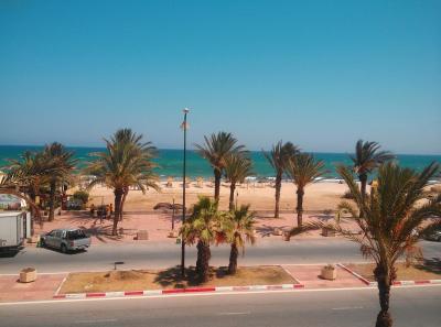 Hotel je hned u pláže, sice přes místní komunikaci, ale přes den v týdnu jen minimálně vytíženou. Pláž a moře jsou součástí přírody a tak do určité míry je stav zavislý na počasí. V době našeho pobytu bylo jen šest dní kdy v moři bylo větší množství řas, ale ne více než tři dny za sebou.