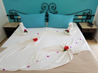 Vybavení pokojů se mi líbilo, je na dobré úrovni a v moderním pojetí. Rodinné pokoje jsou vybaveny patrovými postelemi pro děti. Nezapomeňte na ochranu proti komárům a hmyzu, Repelent a Raid do zásuvky oceníte.