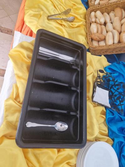 - niektoré jedlá ( palacinky, vajíčka, hranolky, grilované mäso .. ) boli na prídel ktorý bol vo väčšine prípadov naozaj polovičná porcia a na tento prídel ste si naozaj museli odstáť aj 20 minútovú radu. Keď ste sa dostali na radu tak Vám dali porciu ako pre malé dieťa , po žiadosti o väčšiu porciu Vám pridali napríklad tri hranolky a ignoroval Vás.