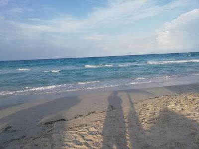 nejkrásnější pláž v Tunisu, čisté moře s mušlemi, ráno vždy pláž uklizená