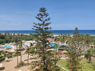 Starší ubytování, jednoduché, měl jsem ale výhled z pokoje 402 na celý areál a na vycházející slunce. Klima jela po celou dobu, voda až na jednu noc tekla a pořád teplá, vlastně jsem byl s dcerou na pokoji jen 3x denně. Úklid každé dopoledne, včetně výměny ručníků.... a uklízečce za pár drobných se líbila moje GAZELA (dcera)