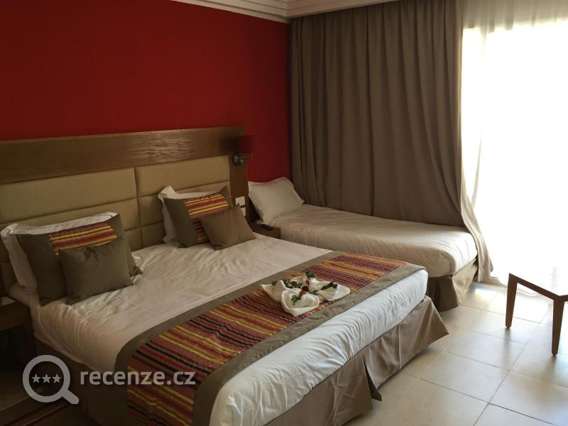 Na recepci uvítací drink. Velký čistý pokoj, skvěle fungující klimatizace, krásný balkon, koupelna s vanou, sprchou a oddělená toaleta. Velké prostorné skříně ocení hlavně ženy, velká televize kterou jsem ani nezapnul :) Krásně to tam vonělo. Každý den probíhal úklid. Maximální spokojenost. Hotel je primárně určený pro celé rodiny včetně malých dětí. Veškeré vybavení je dostupné.