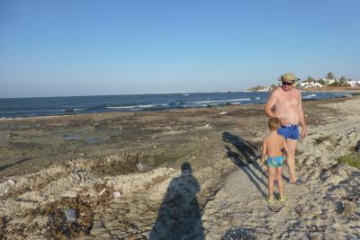 Pláž – moře. Moře špinavé, medůzy, ohraničený prostor bojkami cca 50 x 80m. Nezaplavete si, za bojkami jezdí na skůtrech a člunech. Ze začátku jsme do vody dvakrát vlezli, ale pro nepořádek – odpadky jsme to po chvilce vzdali. Když jsme viděli jak se u břehu objevily medůzy a jak byl jeden z hostů popálený, už jsme nedostali odvahu tam vlézt, takže jsme celou dovolenou trávily u bazénů, ale musel jeden z nás si přivstat a před půl sedmou, než začnou Arabi chodit na snídani, zajistit si lehátka ručníkem, ale i tak se nám stalo, že když jsme k lehátkům přišli po snídani, seděla na nich Arabka s dětmi a ještě na našich ručnících a ještě na vás pokřikuje, že máte strach aby se do vás Arabi nepustili. Navíc nedaleko naší pláže vyváželi fekálem splašky a vypustili to břeh moře a jen to přehrnuli pískem – hlínou. Jeden z hostů od jiné cestovky si to nafotil a slíbil to poslat, takže pokud to pošle, přepošlu to dál.