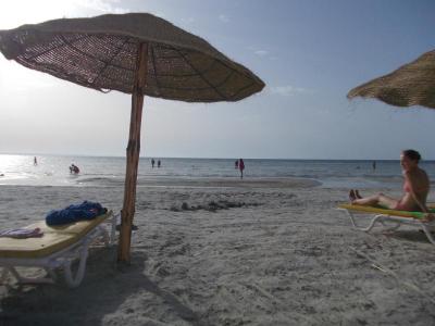 Pláž je celkém pěkná, jemný, světlý písek a pozvolný vstup do moře.Ujdete asi 60 metrů než jste po pás ve vodě - ideální pro děti.Tohle místo však není vhodné pro potápění ( ve srovnání s Egyptem ), nějací ti mořští tvorečci tam jsou ale hlavně písčité dno porostlé chaluhami. Shrunuto - koupání v moři v pohodě.Na pláži je ale nedostatek lehátek, takže když si ráno nějaké před snídaní neobsadíte, pak můžete hledat marně. Personál se snaží chaluhy ze břehu vyčistit a jde jim to - u tohoto hotelu se nám zdála plaž čistší než u vedlejších. Písek na pláži jednou týdně prokypří ale i tak tam zustavají vajgly.Možná je problém v tom že někteří kuřáci pohodlně zahodí vajgl do písku než aby se nahli ke slunečníku kde je košík na toto.