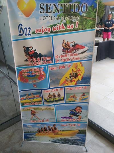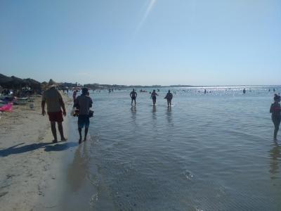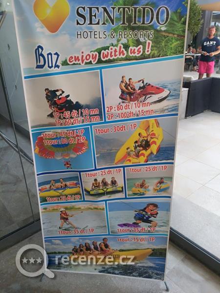 Na pláži je chlápek, co prodá jízdu na vodních lyžích i tomu, co neumí plavat :-). Nabídka vodních sportů široká. Pláž s opravdu pozvolným vstupem do moře a kdo se chce potápět tak ať jede jinam, jelikož za bójkami už jezdí skútry, čluny. Moře čistší, semtam nějaká tráva ve vodě.