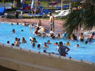 Již nikdy více do tohoto hotelu. po 14h se přižene vlna místních tunisanů s lístky na plovárnu, která do té chvíle byla hotelovým bazénem. Z veřejné pláže se bez placení a kontroly dostane i špína co se nestydí do bazénu v oblečení, kradou jídlo připravené pro all inclusive hosty, lehátka a celkově se chovají jak naše menšina doma. Osobně jsem viděla močit chlapce z kraje bazénu, vyndal ho a chcal do bazénu, přičemž na druhé straně jiný obézní chlapec po obědě zvracel do odvodňovací mřížky u bazénu. pak se ani nedívíte plovoucí zelenině. Plavčík za úplatu krade lehátka turistům a tak u něj pomoc nehledejte pokud Vám zmizí.