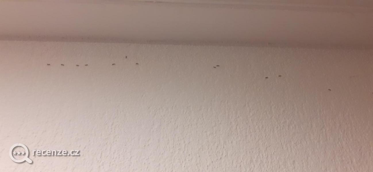 Bohužel v pokoji lezou všude mravenci. Co se týče zásuvek, tak bez krytu. V koupelně místo fenu, byly díry ve zdi.