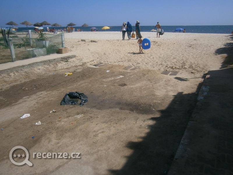 Naprostá katastrofa - CK **** nedostatečně informuje o pláži a zejména cestě na ni.Z nabídku jsem se dozvěděl pouze to,že vzdálenost je asi 400 metrů.Už se ale nikde nedočtete,že musíte ven z hotelu,cesta vede po místní komunikaci,která je plná špíny,odpadků,převrácených popelnic,splašků,zápachu.Vede kolem rozestavěných domů a ústí na veřejné pláži,kde je v písku opět mnoho odpadu,střepů...Samotná "hotelová" pláž je ohraničena,lehátka a slunečníky zdarma,ve výbavě je bar,kde přes den dostanete nealoholické nápoje.Nemožnost osprchovat se sladkou vodou.