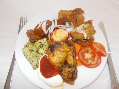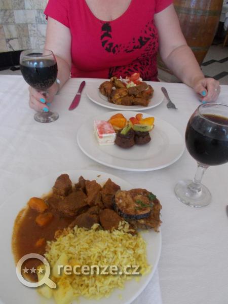 Velký výběr chutného a čerstvého masa,zelenina trochu pokulhávala a dost se opakovala,přílohy pestré,mnoho zákusků i dortů,na mě moc sladké,ovšem ty palačinky k snídani famozní,nasladko a naslano.Ještě+ mi hodně chutnali cukety v těstíčku.Nebyl cítit vůbec přepálený tuk.Na pití v jídelně ale moc sladké jejich nápoje