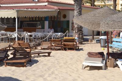 pláž opravdu krásná a čistá,pozvolný vstup do moře,žádné chaluhy ani nepořádek krásný čistý písek lehátka čistá matrace také čisté. dá se dostat i s kočárkem kobereček až na pláž