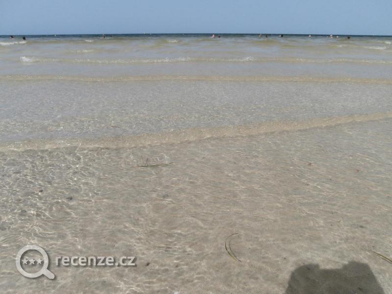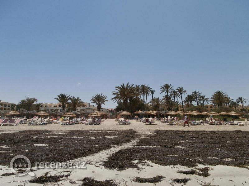 První den po příjezdu byla pláž plná chaluh, ale na druhý den již byla uklizená a moře čisté a teplé jako kafíčko Lehátka a slunečníky jsou zdarma, osušky si můžete zapůjčit zdarma v hotelové recepci. Na pláži je bar, v rámci all inclusive zdarma, ale co se týče pití dostanete zde pouze vodu, colu, sprite, fantu. Během sezony by se prý měla nabídka rozšiřit…