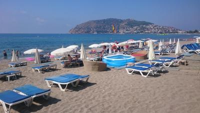 Pláž je písečná s barem, lehátka a slunečník za menší poplatek.