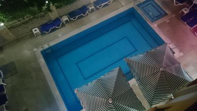 Menší hotel s příjemným personálem, zhruba 5 minut od moře.