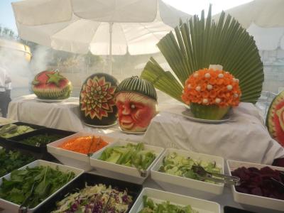 Snídaně - velký výběr. Co kdo chtěl. Sladké varianty - teplé jakoby krosany - výborné, s náplní, jak sladkou, tak sýrovou, sladká rýže,.. Jogurty - 2 druhy, marmelády, nutely,... Klobásky,sýry, vajíčka na tvrdo,.. Před jídelnou denně kuchař připravoval palačinky nebo omelety, vajíčka. Možnost udělání sendviče dle vlastního uvážení. Káva, čaj, ovocné nápoje, dokonce odšťavňovač na ovoce /pomeranče/. Zelenina, ovoce.