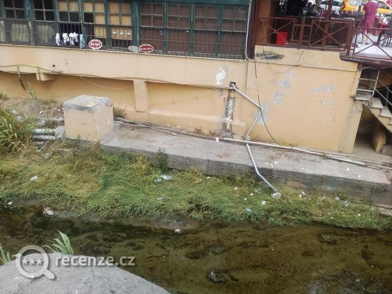 Okolo hotelu teče smrdutý potok. Okna do jídelny byla otevřená a puch z potoka byl cítít až ke stolu