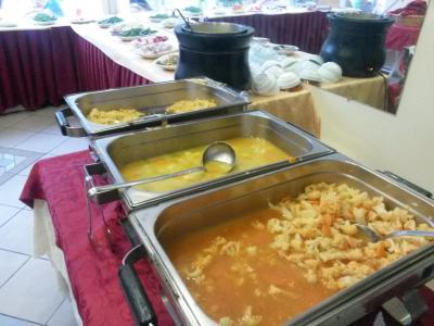 Absolutně nedodržování hygienických návyků. Nádobí často mastné a špinavé, talíře většinou z umělé hmoty, příbory hozené na jedné hromadě. Stoly utírané hadrem, který používali na vše. Jídlo jednotvárné, většinou jen zelenina. Pokud bylo maso, tak jen vnitřnosti nebo mleté (za 12 denní pobyt jen 3x ), které nám bylo přidělováno jen po 1 nebo 2 kouscích!!!!! Potraviny, které zbyly, jsme dostávali příští den.Někdy se stalo, že byla zelenina i plesnivá.Jídlo na mísách se dávalo na špinavé ubrusy, které ani jednou za 12 dní nebyly vyměněny.Na stolech též špinavé ubrusy. Pokud jste nepřišli v danou hodinu ,kdy začalo stravování, nezbylo na vás jídlo.V den příjezdu a odjezdu jsme neměli nárok na jídlo. Nápoje na baru většinou docházely, nabízeli Fantu, Colu, pivo a víno. Museli jste mít štěstí,aby vás někdo obsloužil, personál dělal jako ,že vás nevidí. Takhle si nepředstavuji All-Inclusive -.-
