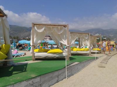 První řady jsou zabrány personálem z baru aby je mohli prodat místním Turkům nebo Rusákům,ale v druhé řadě je to taky dobré a lehátek je dost neměli jsme tedy strach že bychom si neměli lehnout.