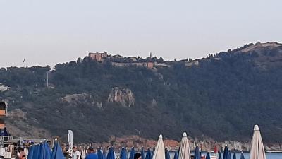 Pěšky kousek na pláži ( u restaurace Sea Garden ) pro příklad 2 lehátka a slunečník 100,- lir na den. A nejlepší vstup do moře. Pláž písčitá s troškou kamínků, moře čisté.