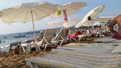 Pozvolný vstup do moře, čistá, udržovaná pláž, ochotný personál na pláži.