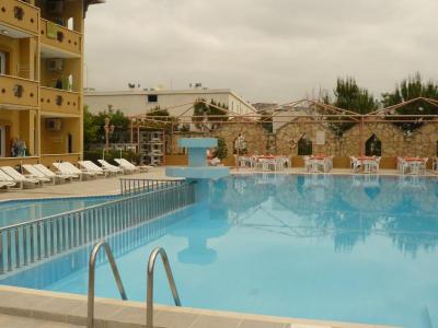 Hotel se skládá ze 2 částí přes silnici. Vstup do moře pozvolný. Slunečníky a lehátka na pláži a u bazénu zdarma. Plážové osušky jsou k dispozici za poplatek 2 eur. Internet za poplatek 1 eur/15 min. Trezor na pokoji možný za poplatek 2 eura na den. Minibar denně doplňován láhví vody. Nejbližší bankomat 1 km od hotelu. V rámci all inclusive jsou zdarma i nápoje na disco od 23:00-02:00hod. Jinak all inclusive 10:00-24:00. Hotel pořádá animační programy. Skluzavky pro děti. Tenisové kurty za poplatek 1 hod/5eur. Restaurace na hlavní jídlo se nachází naproti hotelu. Hotel má bus, který 3 x denně za poplatek odváží klienty do Alanye. Hotel je na kopci, nedoporučuji pro starší klienty nebo maminky s kočárky. Pláž se mi moc nelíbila, doporučuji boty do moře.