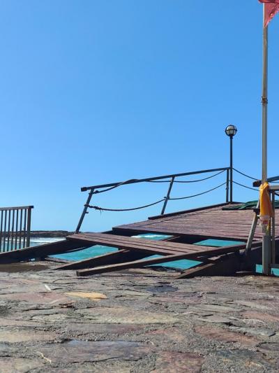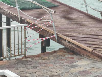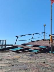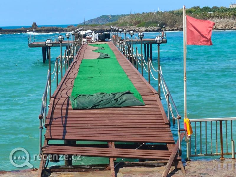 Mnohé slunečníky nelze otevřít. Pomocný personál nepřítomen. Molo zavřené. V katastrofálním stavu. Bazén čistý. Plavčíci pospávající.