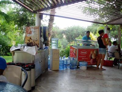 Jídla hodně,ale žádný zázrak,maso za týden jen 2x,dost zeleniny,ovoce málo.A všude kopr,asi je to ruské národní jídlo.Bála jsem se i kousnout do jablka,aby v něm nebyl kopr :-)Zákusky kapitola sama o sobě,všechno pudingové či z jakési krupice jen barvené různě hlavně,že je toho hodně.Nápoje klasika jako všude v Turecku