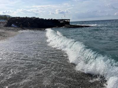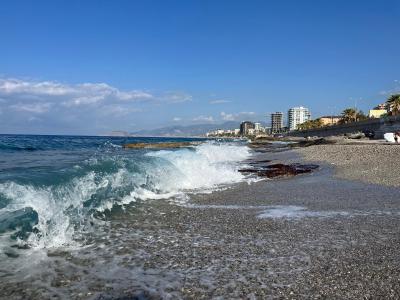 Moře je ideální pro plavce, je zde opravdu velký prostor pro plavání a moře bylo příjemně teplé. Pláž je oblázková, a přestože jsou oblázky zaoblené, po chvíli není příjemné se po nich pohybovat. Boty se vám jistě budou hodit. Jinak jsou na pláži trochu větší vlny, ale příjemné, nikdy nebyly nebezpečné. Děti (3 roky a 5 let) si je užily. Na pláži je bar a sprchy. Nenavštívil jsem tam toalety, nemohu hodnotit jejich stav.