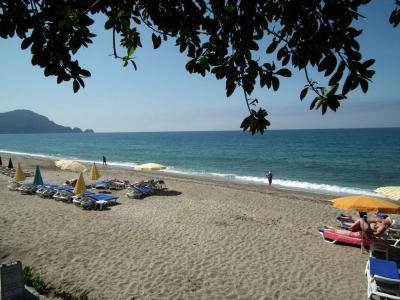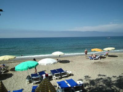Písčito-oblázková menší pláž přímo u hotelu. Vstup místy s kameny či kamennými platy.