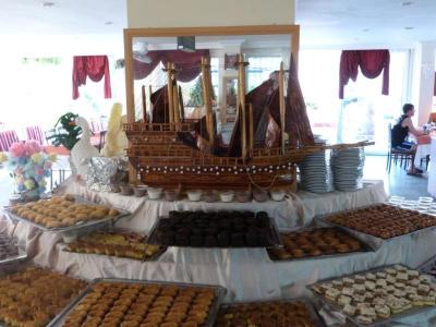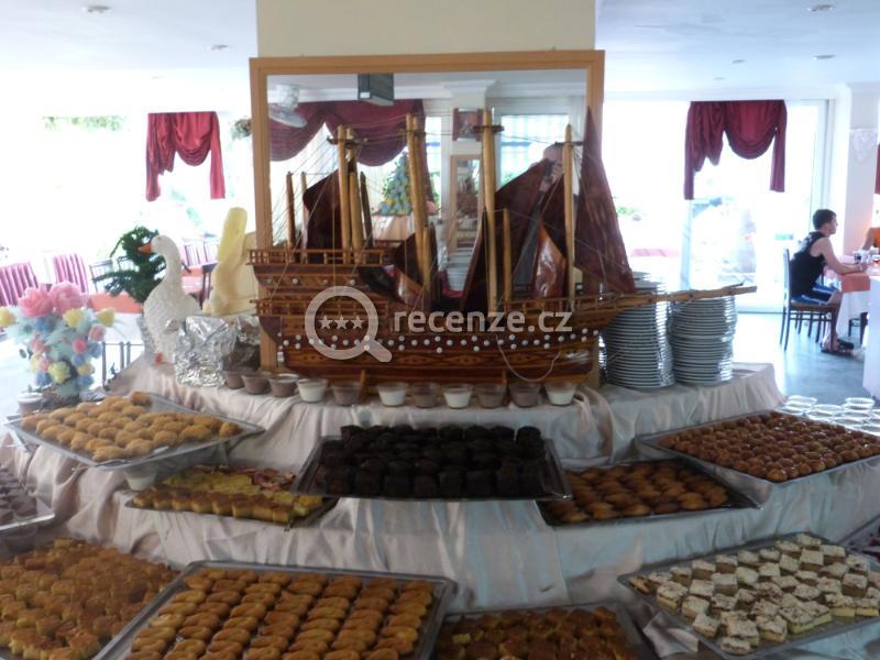 Jidlo prumerne,cely tyden stejne. Snidane vajíčka,parky,jogurty,lupinky.Obedy testoviny,vždy nedovarene brambory,hov.maso z polotovaru,kur.maso s hraskem,obcas ryba,1x za pobyt gyros z neznámého masa.Priserne sladke dezerty plne oleje,obcas pudink,1x palacinky.Na piti pouze gin,vodka,něco jako Rezna, něco podobného Sprite,Pepsi,Mirinda, tocene pivo (rum třeba nevedly,vse ostatní za poplatek).Ostatni volne k dispozici:kava z automatu dobra,caj,voda,sirupove stavy.Strava celkem sla ale po tydnu jsme se tesily na poradne maso nebo něco co nebude chutnat jako tam-vsechno mělo podobnou barvu,chut i zapach.Castokrat si nebylo kde sednout,aktivni uklizeci nekolikrat odnesly cele piti nebo jidlo nez jsme si stihly donest neco dalsiho ke stolu.