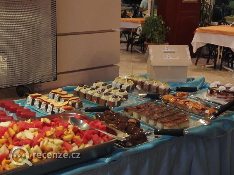 Vzhledem k možnosti srovnání s dvěma dalšími hotely v Alanyi (Kleopatra Celine, Mellissa) jsme byly jídlem trochu zklamané, jednak je poměrně malý výběr, zejména snídaně jsou stále stejné, a jednak nám jídlo připadalo dost málo ochucené. Hotel má