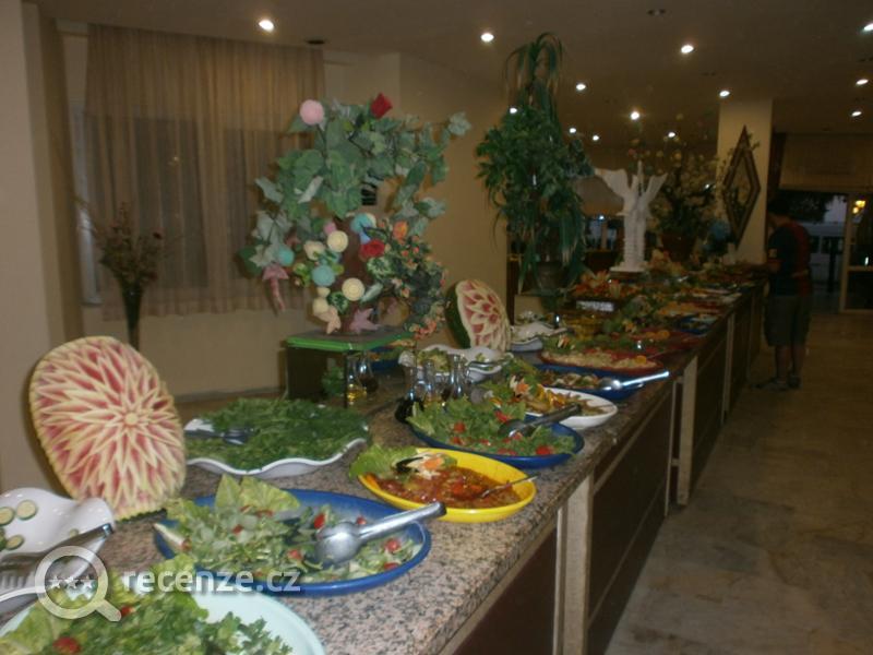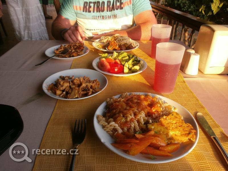 Strava pestrá hodně zeleniny a salátů, dále těstoviny, rýže, kebab. Střídavě večeře po dnech. Na výběr ve formě švédských stolů, talíře čisté.