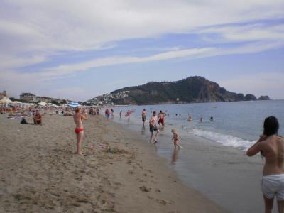 Najznámejšia Kleopatrina pláž je vzdialená od hotela len cez miestnu promenádu. Pláž je piesočnatá s pozvoľným vstupom do mora. Priamo k hotelu patrí pláž č. 21. Slenčníky a ležadlá za poplatok (1 slnečník + 2 ležadlá=5 eur/deň). Plážový bar je tiež za poplatok.