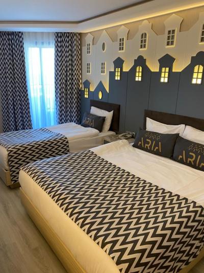 Aria Resort Spa & Hotel, složený ze dvou bloků propojených chodbou, se vyznačuje intimní atmosférou a tureckou pohostinností.