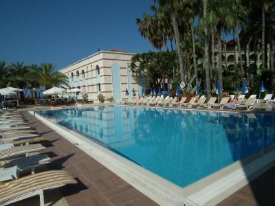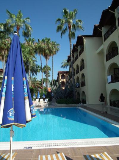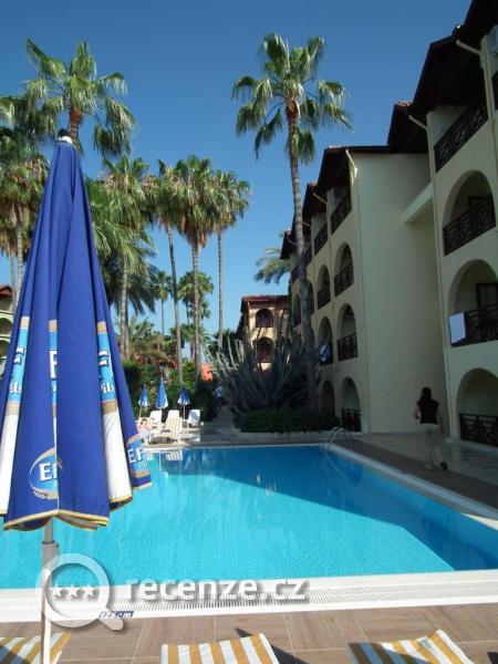 Nejhezčí na hotelu je zahrada a vnitřní areál hotelu. Pěkný bazén, lehátka a slunečníky u bazénu i na pláži zdarma. Vvstupní hala s recepcí s Wi-Fi připojením (za poplatek), internetový koutek (za poplatek), restaurace, bar, kadeřnictví, minimarket. V zahradě jsou 2 bazény a dětský bazén. Dále tenisový kurt (noční osvětlení za poplatek), stolní tenis, basketbal, šipky, fitness centrum se saunou, plážový volejbal. Za poplatek masáže, kulečník, vodní sporty na pláži. Animační programy.. Nevím, jak moc hlučné, v době prohlídky byl areál klidný.