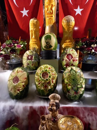 Úžasné. Tak pestré a rozmanité tabule, navíc velmi vkusně naaranžované jsem jen tak někde neviděla. Při akci nazvané Turecká noc byly kolem bazénu nádherně naaranžované stoly plné ovoce, masa, ryb, studené kuchyně a vynikající zákusky