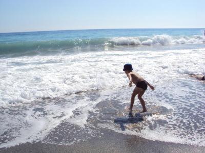 Pláž moc neudržovaná, místama kamínky, moře čisté , někdy větší vlny, ale nevadily, jinak v pohodě
