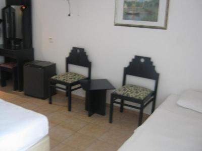 Jednoduché 2 lůžkové pokoje s možností 2 přistýlek mají centrální klimatizaci, TV, minibar, menší balkon, starší nábytek, trezor na recepci za poplatek 1 euro/den