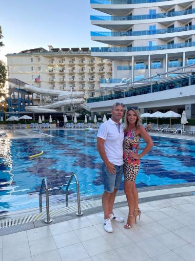 Na letecké dovolené po 14. Turecko po třetí, vždycky 5* hotely, které jsem si sama s půlročním předstihem vybírala, aby bylo z čeho.Tenhle vybrán a placen v únoru. Cena 25 tis./ os. Za 8 dní. Nyní 43 tis. / os. Ale cena naprosto adekvátní službám.