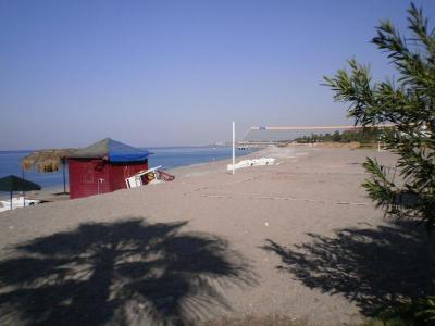 Piesočnatá pláž, pri vstupe pás malých kamienkov. Slnečníky, ležadlá, matrace a osušky zadarmo, resp. v rámci all inclusive.