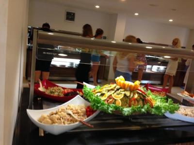 Švédské stoly-ranní snídaně:pečivo,sladkosti,zelenina a ovoce,vejce,michana vejce,parky,salámy,jogurt bily,marmelády,med,sýry, Obědy:švédské stoly-ryze,kur.maso,sýry,zelenina-okurky,rajčata,papriky, saláty-mata,rukola apod.,brambory,ovoce,sladkosti.Vecere: denně grilování-ryba,kebab,hranolky,opec.brambory,tunak,ryze,zelenina,ovoce-meloun,sladkosti,Odpolední snack:16-17h -buchty-sladké a slané,k dispozici čaj,káva,late,čokoláda,juice-broskev,třešen,ananas,pomeranč,voda,cola,fanta,nestea,pivo,Lemone ,na plazi vždy občerstvení-koblihy,zelenina,meloun,hamburger,kur.nagety a hranolky,všude led.triste-jahoda,rybíz,pomeranč, limetky a smouli.Snidane:7:30-10:00(do 9:00dostanete vse,poté více snedeno/,oběd:12:30-14h,večeře:19-21:00h
