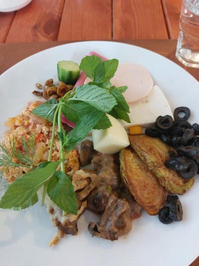 Zelenina čerstvá i grilovaná, saláty, různé ovoce od pomerančů po melouny, maso zpravidla jako mleté kuličky, řízečky, dušené se zeleninou, nebo plátky z venkovního grilu. Velký výběr zákusků.