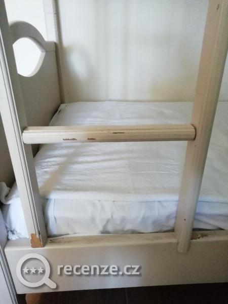 Pro 4 osoby nám byl přidělen malý pokoj s malou manželskou postelí a jednou přistýlkou,druhá přistýlka chyběla,v podstatě ani nebyla kam dát....měnili jsme tedy pokoj.Pokoj po výměně byl větší s palandou na týden jsme museli příplatit 35 euro !!!, nábytek rozbitý,lezly hřebíky u postele,díry v posteli,horní patro palandy nebezpečné pro děti,zábrana i schůdky uvolněné!! V koupelně rozbitý fén ,šňůra omotaná izolační páskou!...Plíseň a po celou dobu zápách z odpadu, nedostatečné odvětrávání.Znovu jsme žádali o výměnu, tři dopoledne jsme řešili ubytování,místo toho abychom byli u moře..