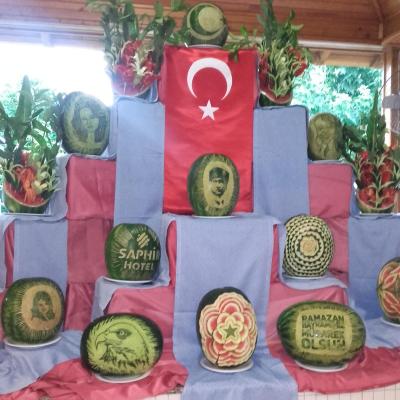 Stravování bezkonkurenční, všeho na co si jen člověk vzpomene, i mořské plody, ovoce, zelenina, dortíky..... ani nelze všechno ochutnat. Jinak se bylo možné najíst i v druhém menším hotelu, i když tam to bylo trochu omezené a v plážovém baru, když se nechtělo jít na oběd - pizza, pečené plněné brambory, omelety, turecké placky atd. Jinak po celé zahradě chladící boxy s balenou 250 ml vodou a ovocnými džusy, jogurty, mlékem atd., a kdo si rád dal něco dobrého k pití, tak od 10 do 24 hodin v kterémkoliv místě objektu různé nealko i alko koktejly, víno, pivo, tvrdý alkohol v neomezeném množství :D. O půlnoci polévka.